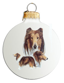 | This ceramic Collectible Ball is nicely decorated with a picture of a Collie (Smooth). Includes a box for storage. | |