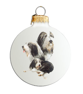 | This ceramic Collectible Ball is nicely decorated with a picture of a Collie (Bearded). Includes a box for storage. | |