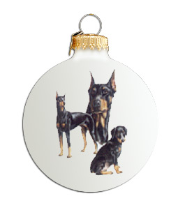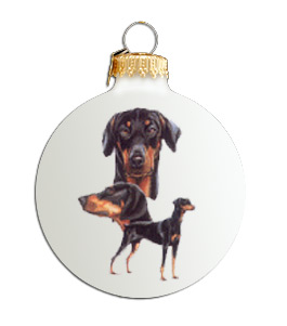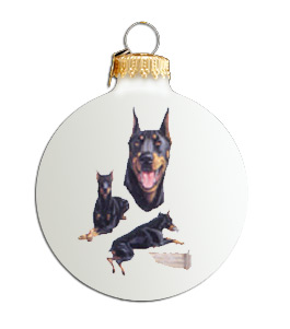 | This ceramic Collectible Ball is nicely decorated with a picture of a Doberman Pinscher (Uncropped). Includes a box for storage. | |